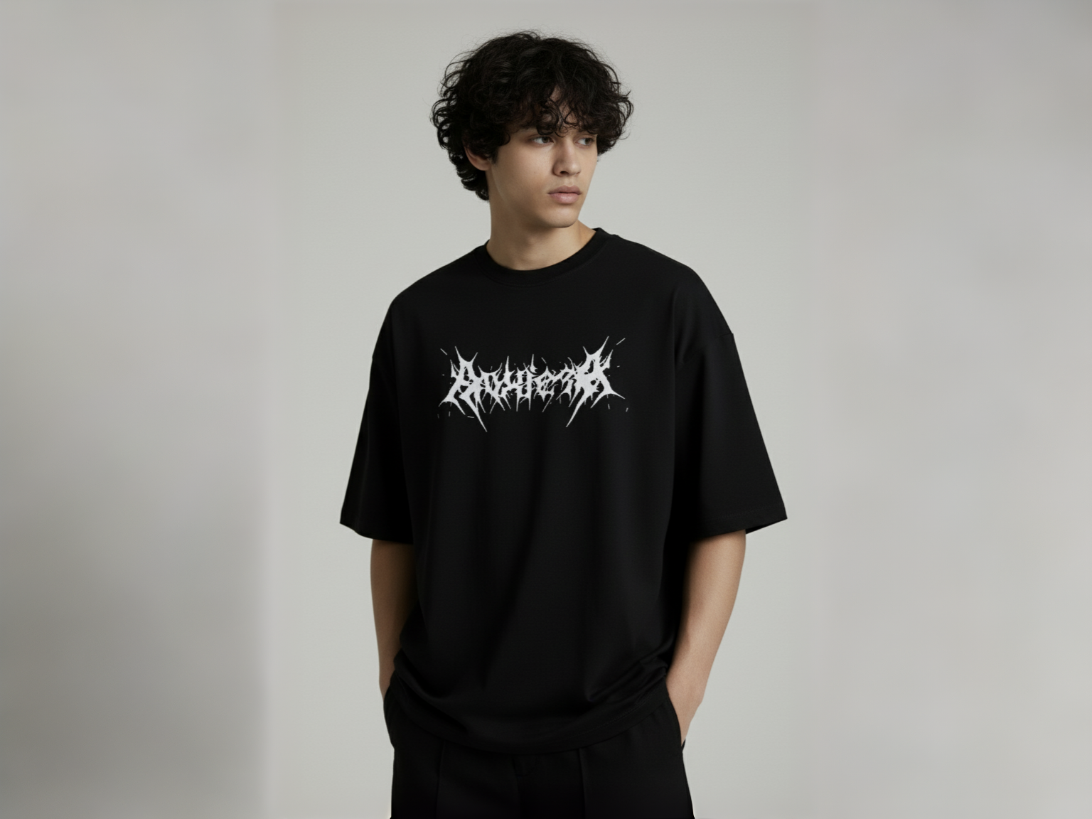 Black Acid Wash Oversized Slayer Graphic T-Shirt for Men