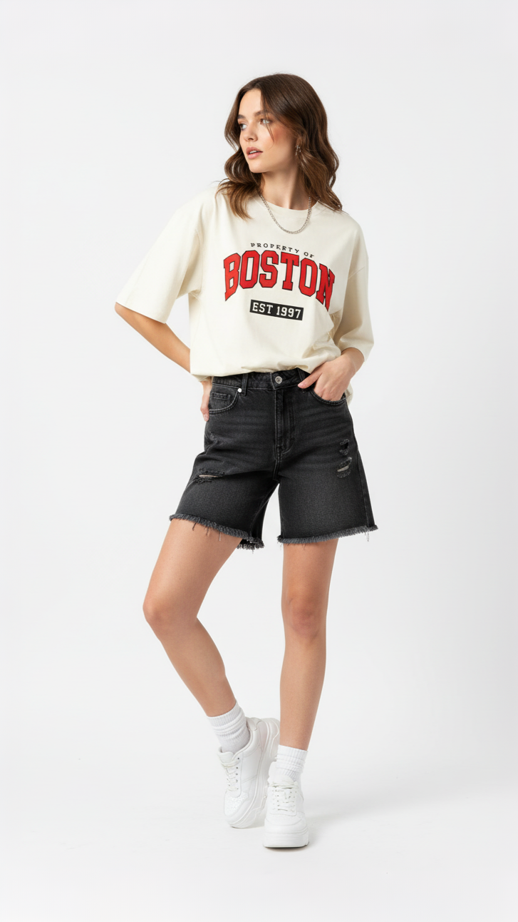 Level up your casual wardrobe with our must-have Women's Oversized Graphic T-Shirt. Featuring a bold 'Property of Boston EST 1997' print, this tee delivers a trendy vintage-style and streetwear look.